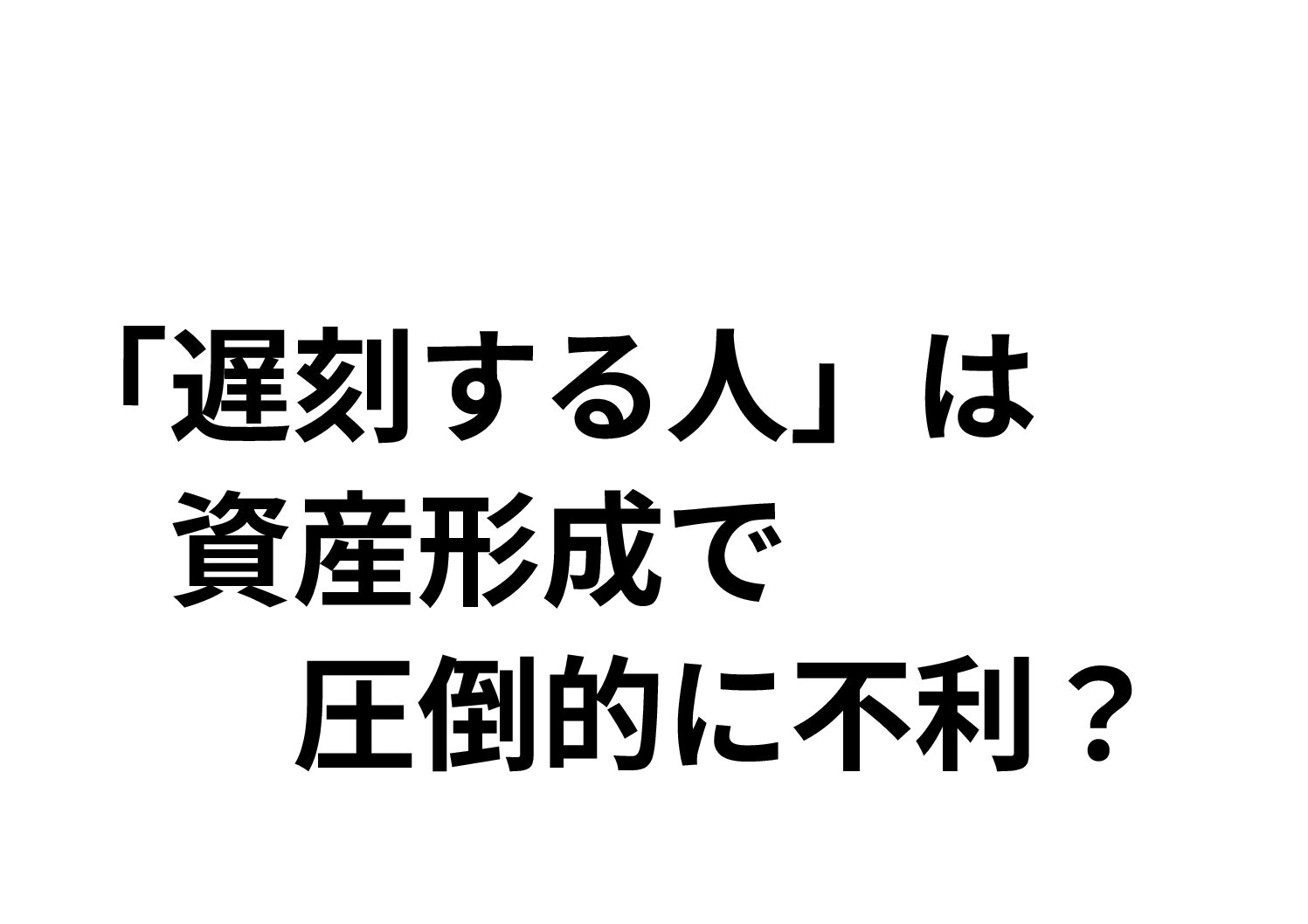 • 複利で広がる格差: 20代で得られたはずのチャンスを遅刻で逃すと、その後のキャリア形成に大きな差が出ます。生涯賃金の差は、投資に回せる余剰資金の差となり、数十年後には数千万円の資産格差となって現れます。